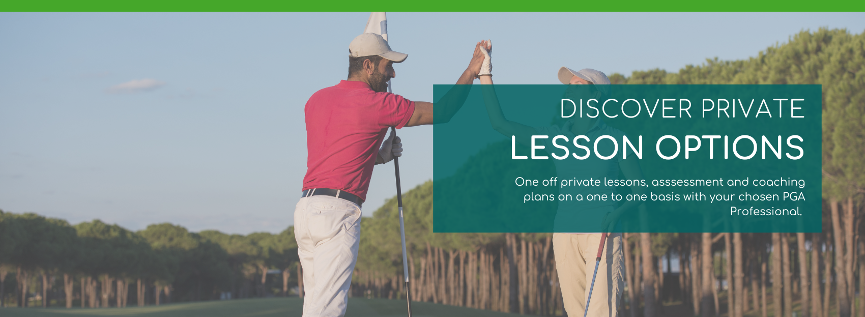 Private lesson options with our team of PGA Professionals. Choose from one off lessons, assessments and coaching plans!